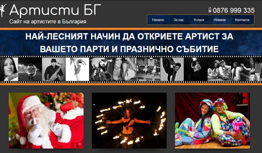 На сайта можете да намерите информация за предлаганите услуги по организиране на събитие с участието на професионални артисти. Можете да направите запитване чрез формата за контакти или на посочения телефонен номер.