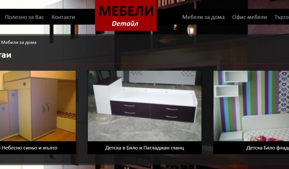 Мебели "Dетайл" отговарят на точно тази необходимост домът да бъде обзаведен според нуждите, вкусовете, потребностите и бюджета на клиента. Екипът ни създаде техния сайт - http://mebelidetail.com, където можете да видите много снимки на изработеното по индивидуални заявки обзавеждане; да разберете повече за фирмата и как да се свържете с нея.